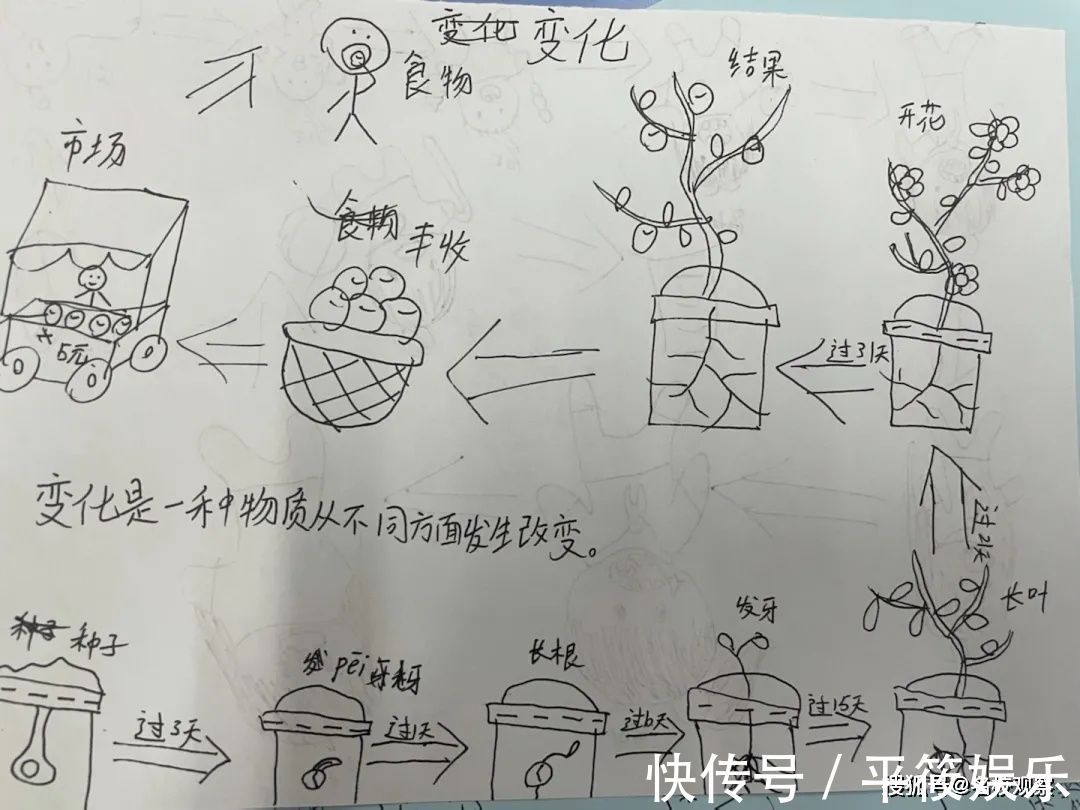 有的孩子则用连环画的形式,呈现了从一粒种子长成参天大树的过程。