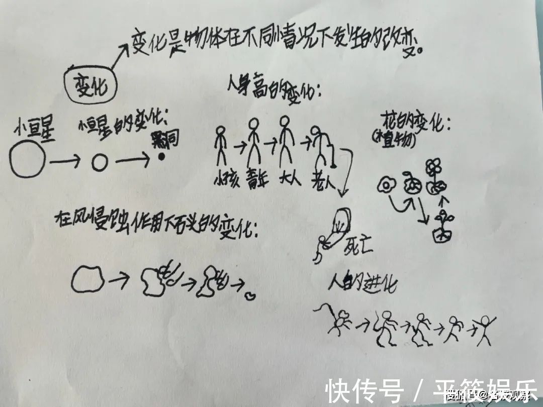 有的孩子用思维导图的形式,呈现了变化的众多对象;